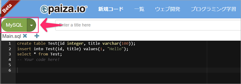 通常のデータベースは、テーブルの作成やデータを追加した内容は永続化されて保存されますが、paiza.ioは、永続化が行なわれません。